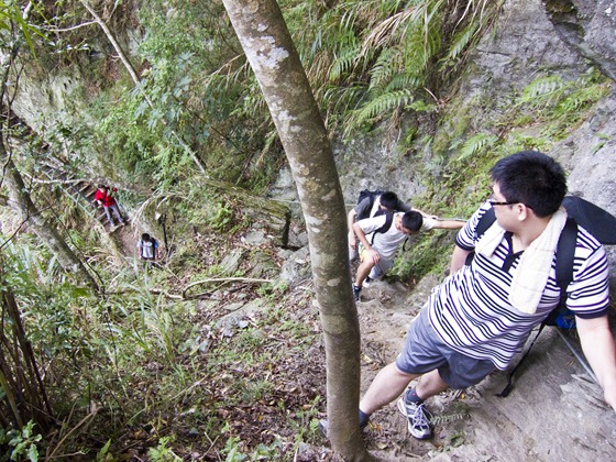 | ▲ 下了鐵梯之後,馬上又是向上爬升的考驗(鐵梯的階面積很小,行走時要注意腳步) |